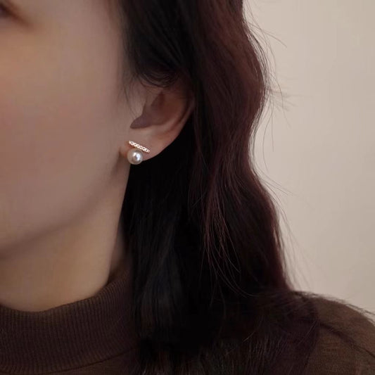 Haute sense of original design balance wood row diamond natural 6A strong light high brightness freshwater pearl earrings