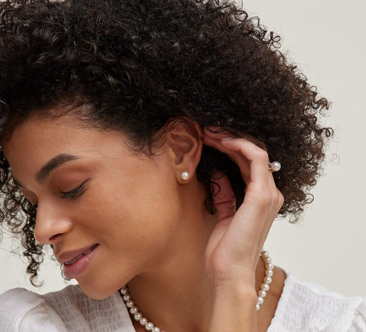 Round White Freshwater Real Pearl Earrings for Women - Silver Stud Earrings | Hypoallergenic Earrings with Genuine Cultured Pearls