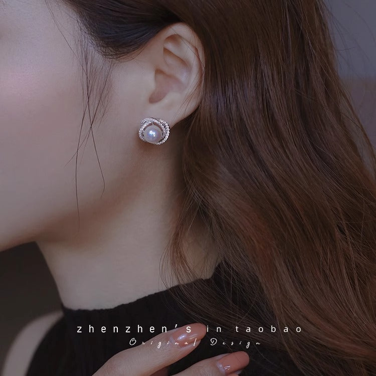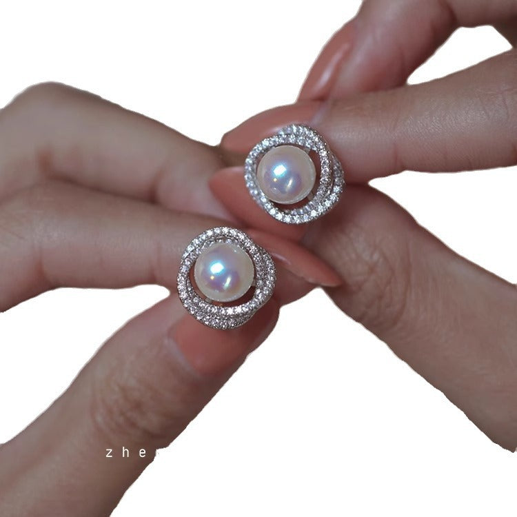 Elegant atmosphere of natural strong light freshwater 6A flat round pearl earrings temperament senior sense of light luxury 925 silver earrings