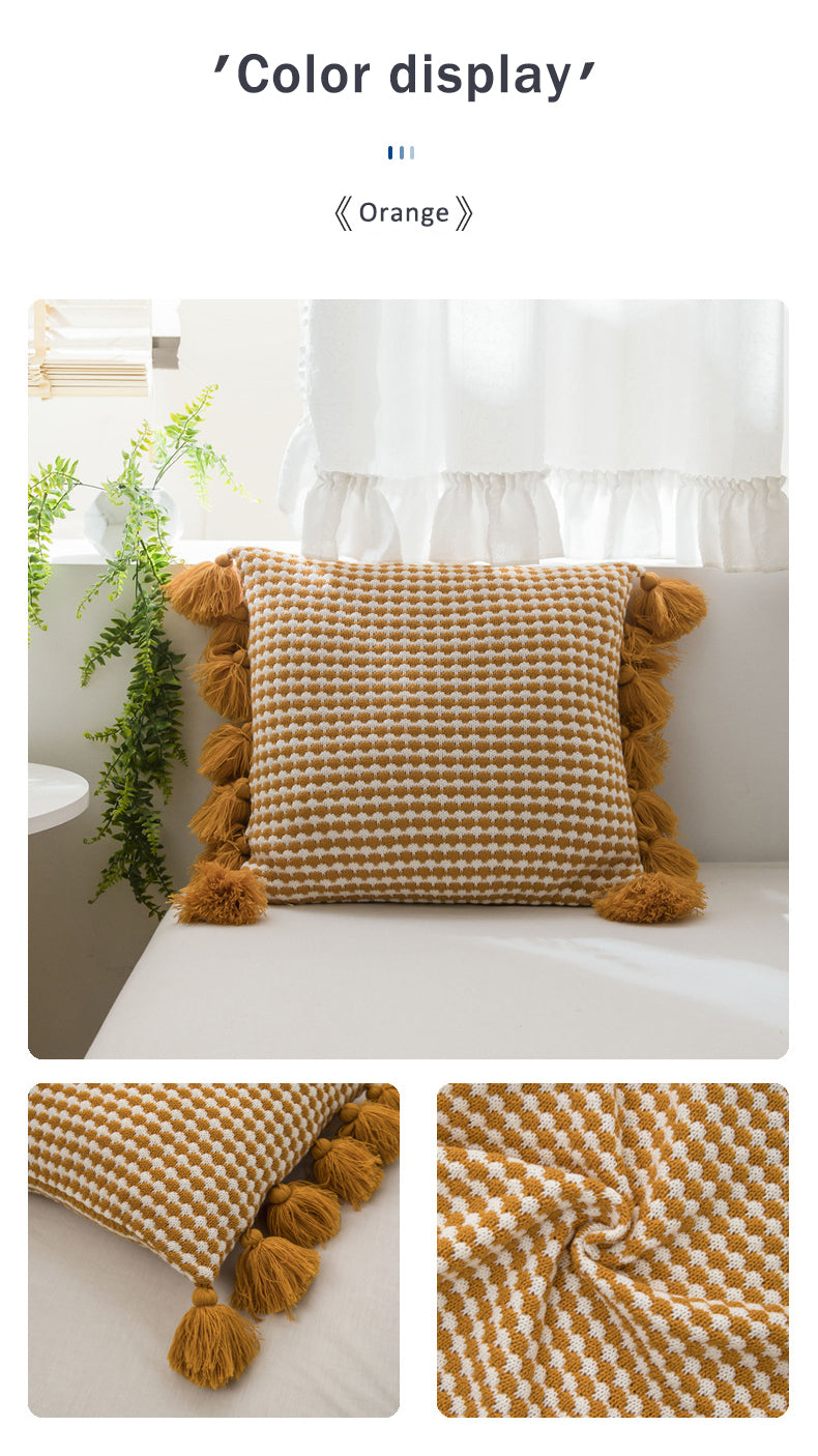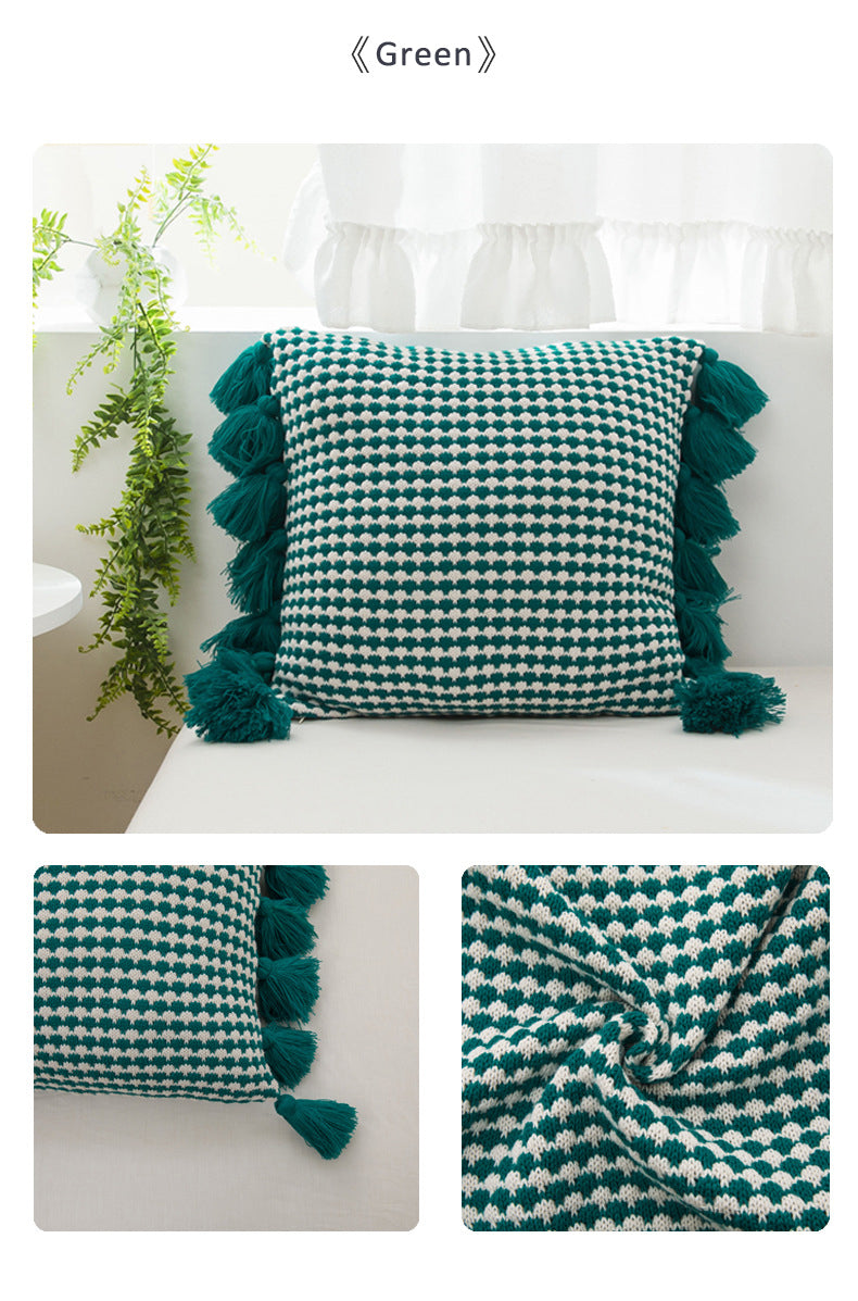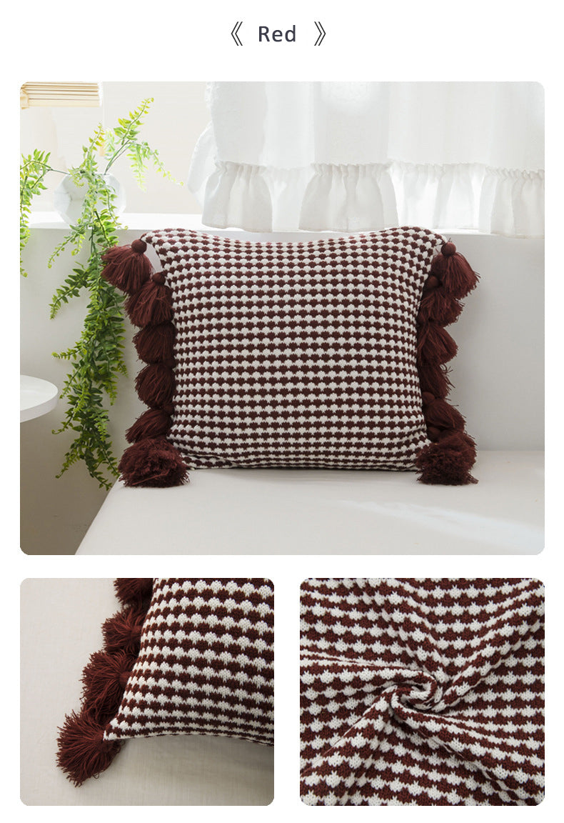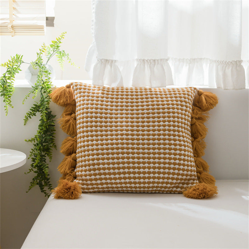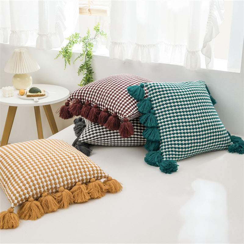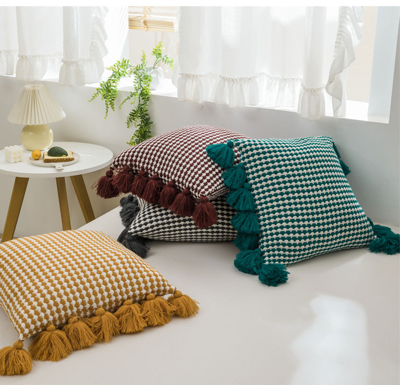 European style light luxury tassel knitted pillow lumbar sofa living room office pillowcase cushion
