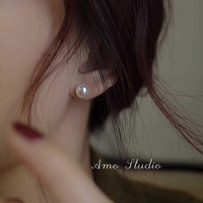 Earrings with 4mm-5mm large ear support, sterling silver material, in addition to pure k gold and gold is generally used in the round pearls, many of the home this paragraph with the alloy material, we use the whole body of the sterling silver material including ear support and needle are all sterling silver material !