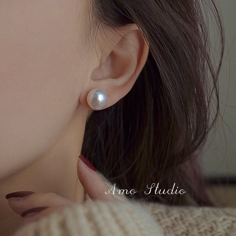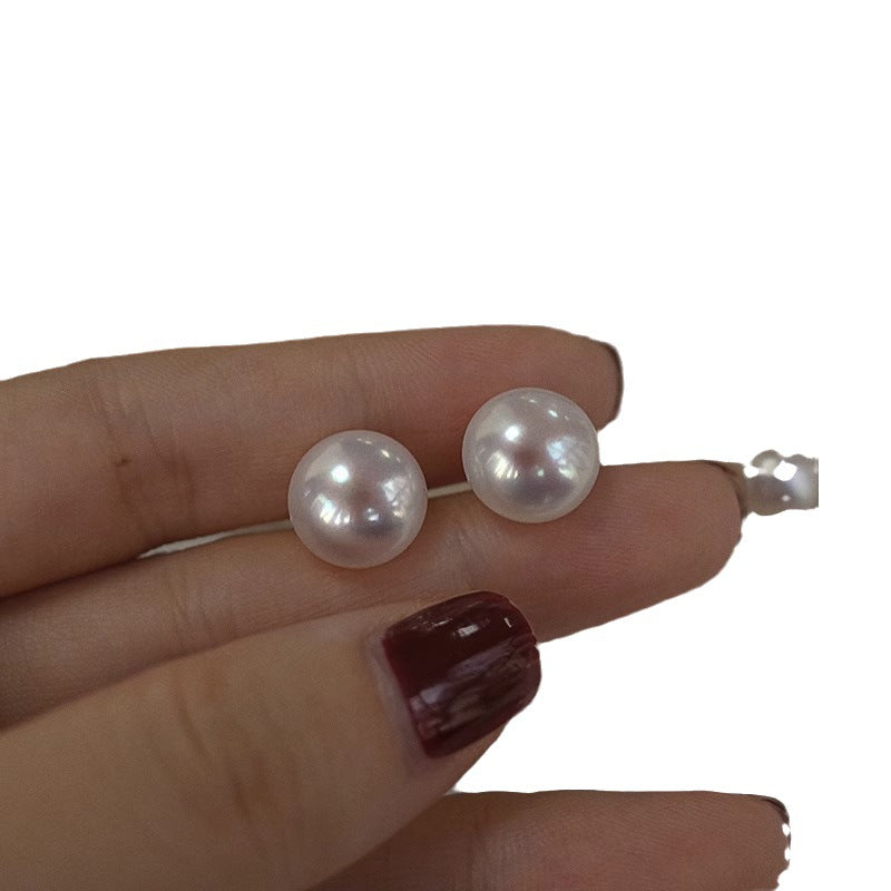 High-quality 6A strong light Zhuji natural freshwater flat round pearl sterling silver earrings 5-11mm simple earrings