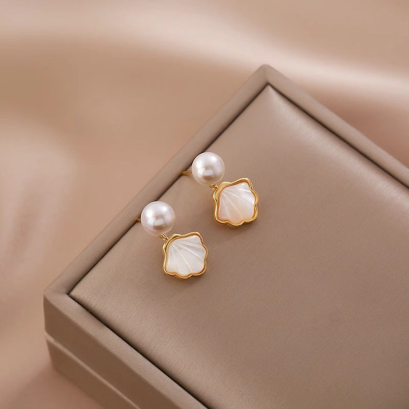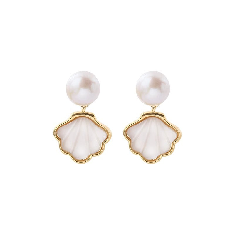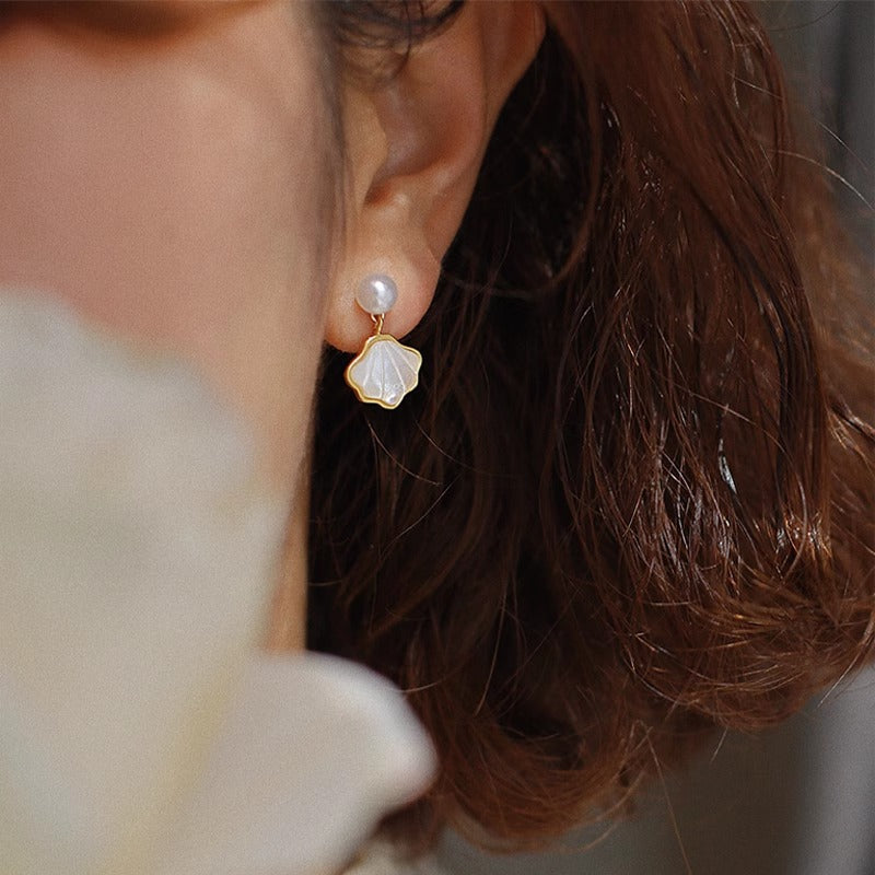 Zoholife high-quality a shell 6A strong light natural freshwater pearls white butterfly shell fan-shaped earrings silver pin earrings