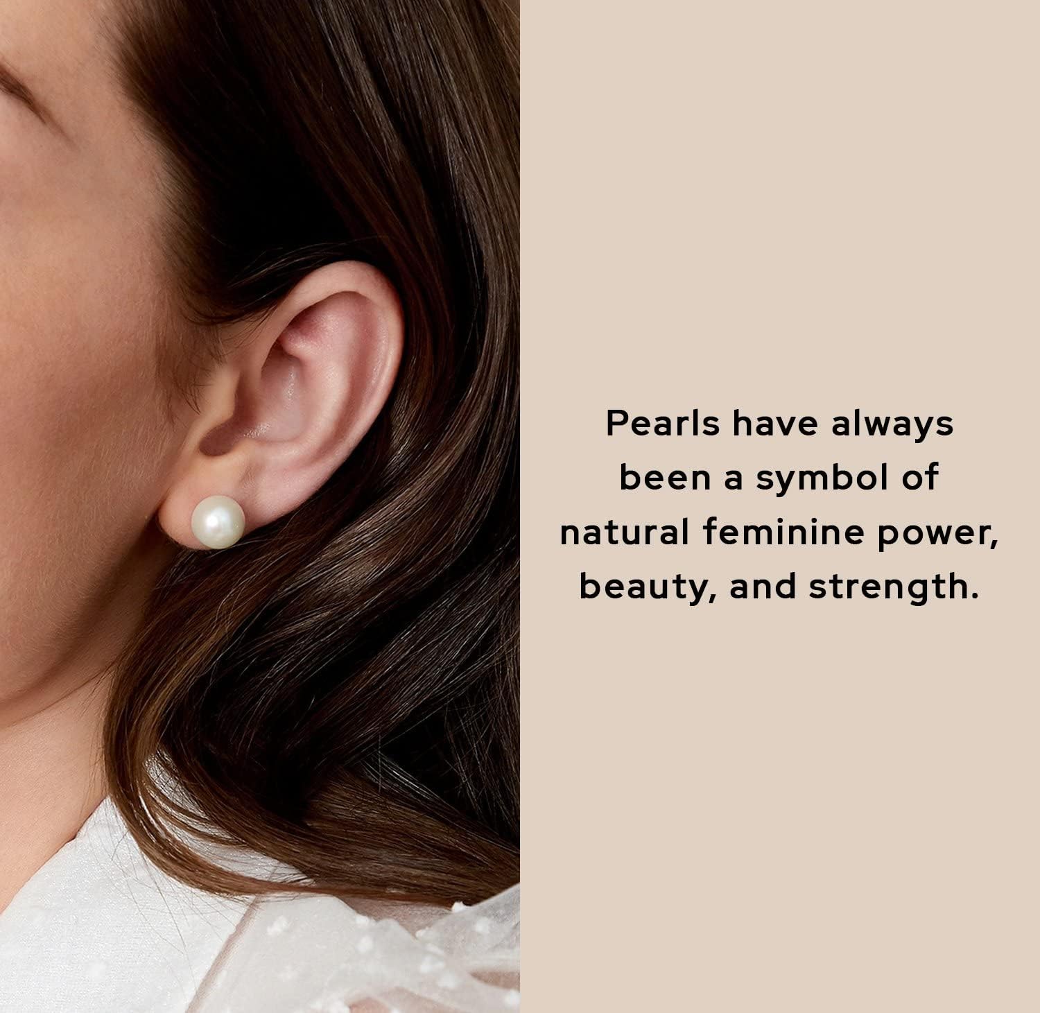 Round White Freshwater Real Pearl Earrings for Women - Silver Stud Earrings | Hypoallergenic Earrings with Genuine Cultured Pearls